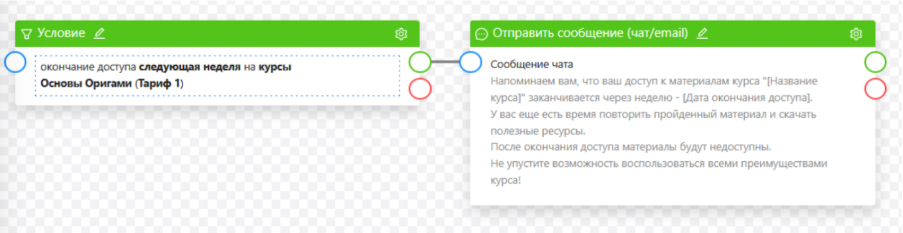 Если у заказчика контент курса до конца не готов, но обучение уже стартует. Можно поставить временную задержку открытия доступа. Но лучше открывать уроки вручную по готовности контента на случай, если урок автоматически откроется, а контент будет не готов.