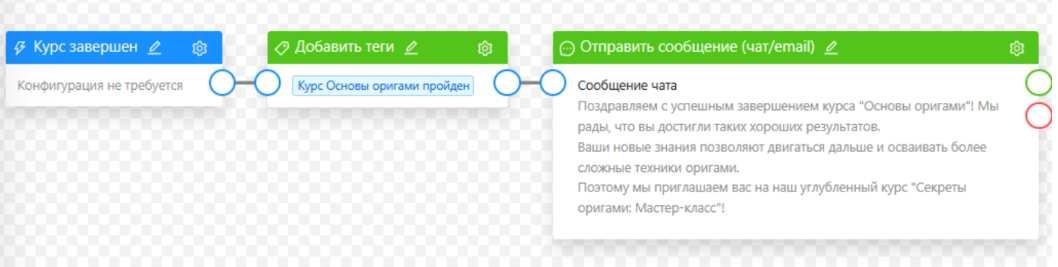 Например, после того как урок пройден → ученику приходит письмо: