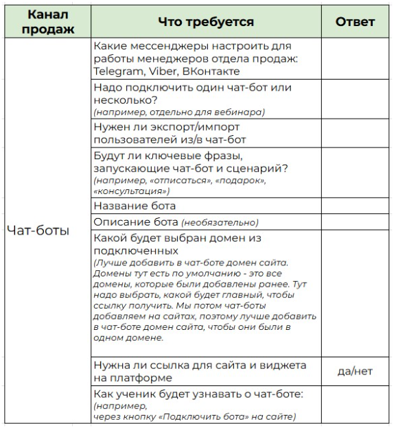 Чат-бот может быть создан не только в маркетинговых, но и учебных целях, то есть уже после того, как клиент купил обучение.